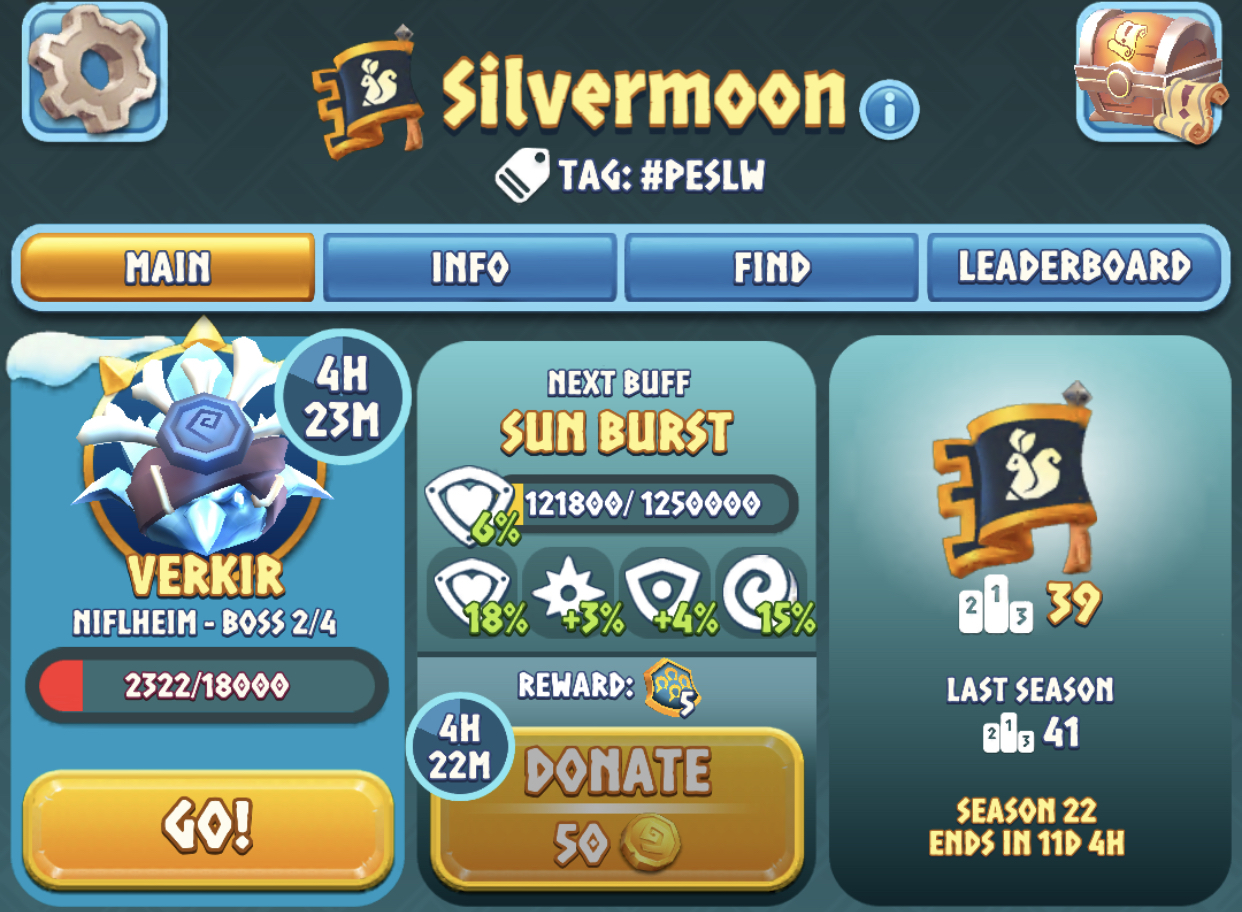Howdy, Silvermoon still has a few post update spots open. Before the update we were in the teens, but the leadership wanted to leave and that caused some of our top players to leave. We should still be able to stay in the top fifty easily. We have a few spots open and two more will open up eventually. We’ve always been accommodating to people who don’t do as much damage as long as they donate and use their attacks according to guild chat. We have also always been against the idea of academy/feeder guilds.